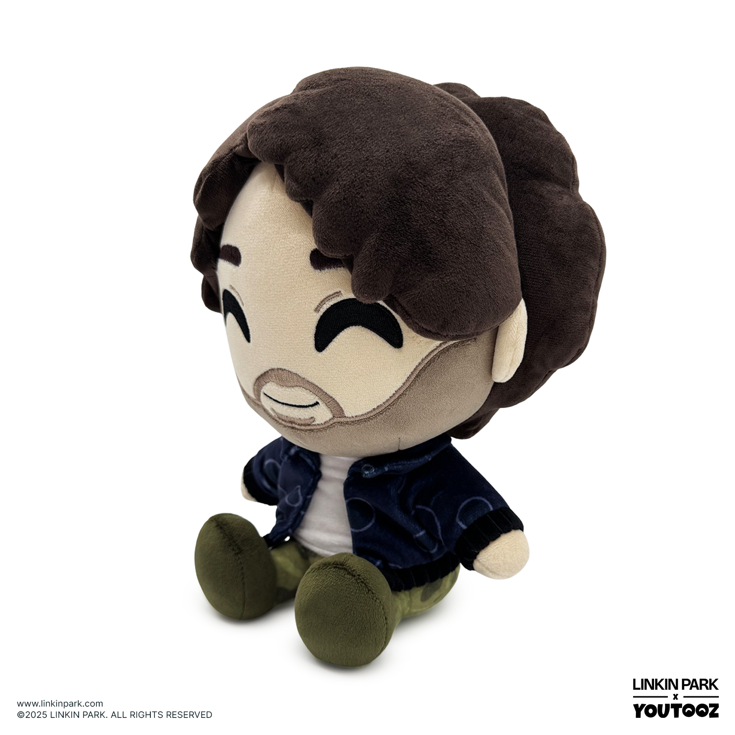 Linkin Park’s been in the studio working on another banger, only this time it’s with Youtooz for their plush debut! Colin sits at 9 inches tall with a light beard wrapping around his face to surround a cheery smile as his puffy brown hair is parted in the middle and fans out from the back of his head. Mixing patterns to pull off ultimate style, he wears an open blue jacket with cuffed sleeves over a white shirt, along with splotchy green camo pants and khaki shoes. This plush is packed to the seams with 100% PP cotton and is made of the softest minky material, absolutely perfect for cuddling or smacking the drums with!
