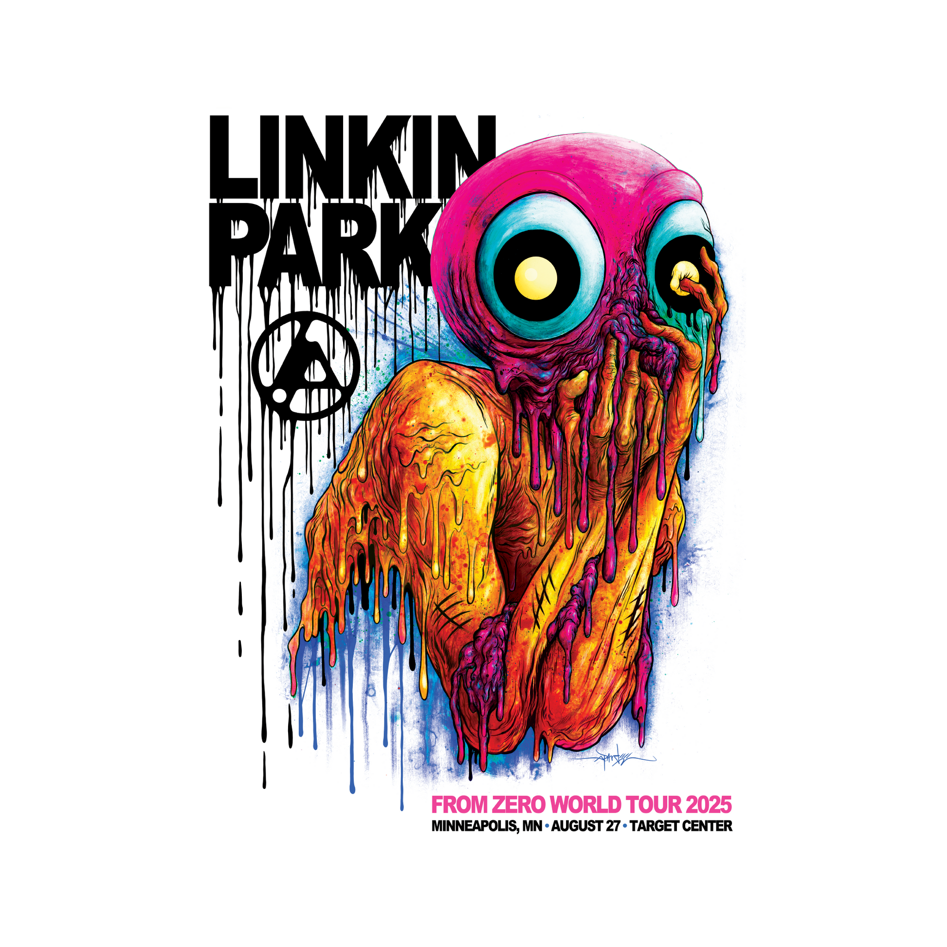 Linkin Park has commissioned artist Alex Pardee to create artwork for a limited-edition poster for the 2025 From Zero World Tour stop in Minneapolis. Each hand-numbered print is limited to 200 copies and is printed on 18" x 24" heavy cold press cotton rag 300gsm paper with a deckle edge.
