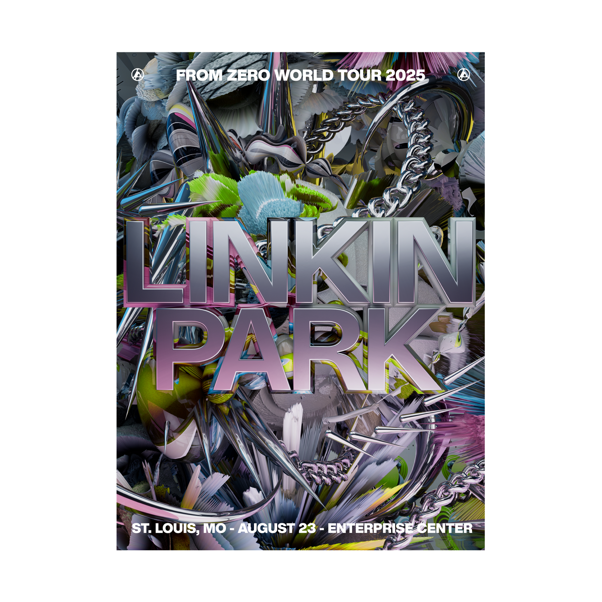 Linkin Park has commissioned artist PJ Richardson to create artwork for a limited-edition poster for the 2025 From Zero World Tour stop in St Louis. Each hand-numbered print is limited to 200 copies and is printed on 18" x 24" heavy cold press cotton rag 300gsm paper with a deckle edge.