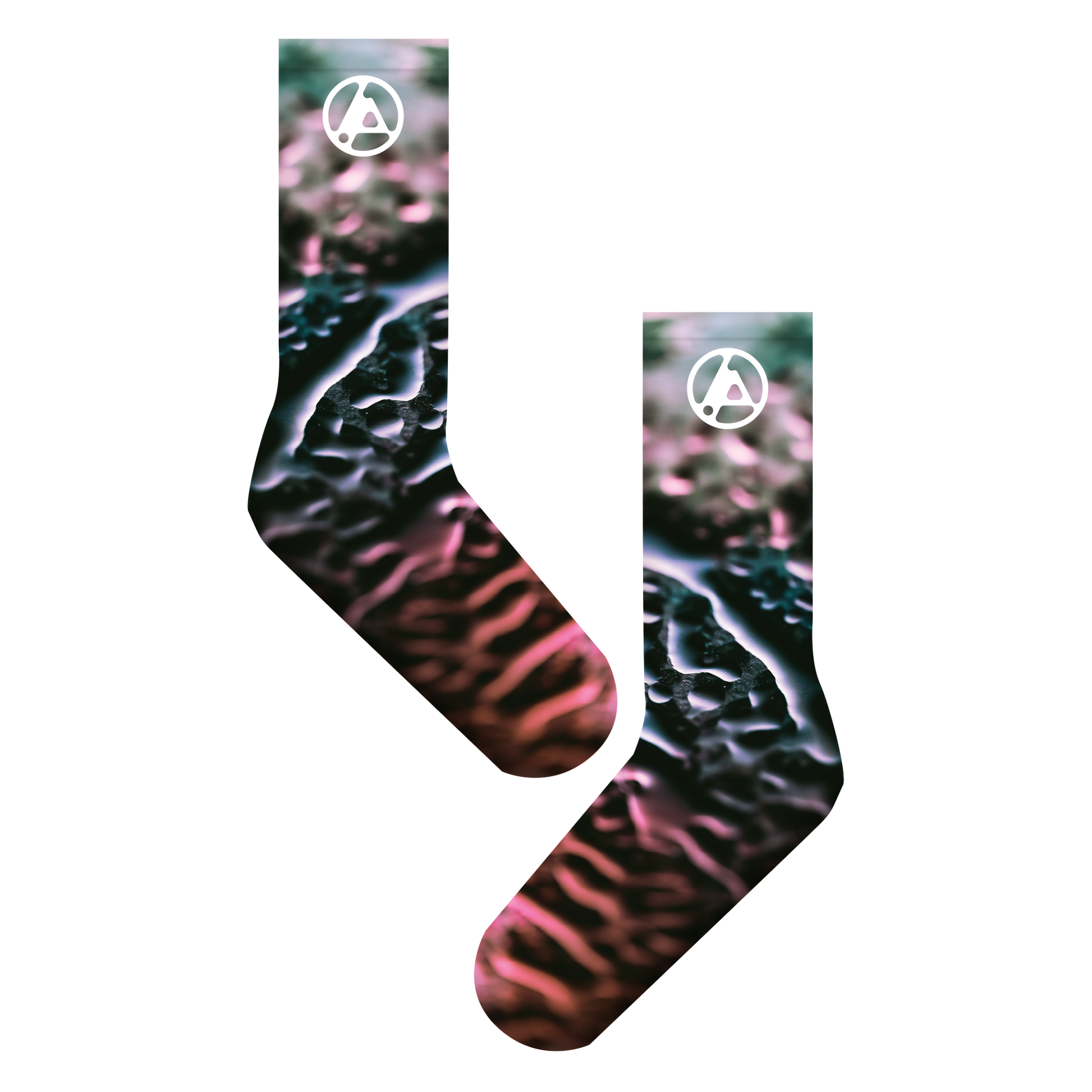 Digitally printed crew socks featuring the From Zero album art with bubble texture. 75% Cotton, 22% Polyester 3% Spandex