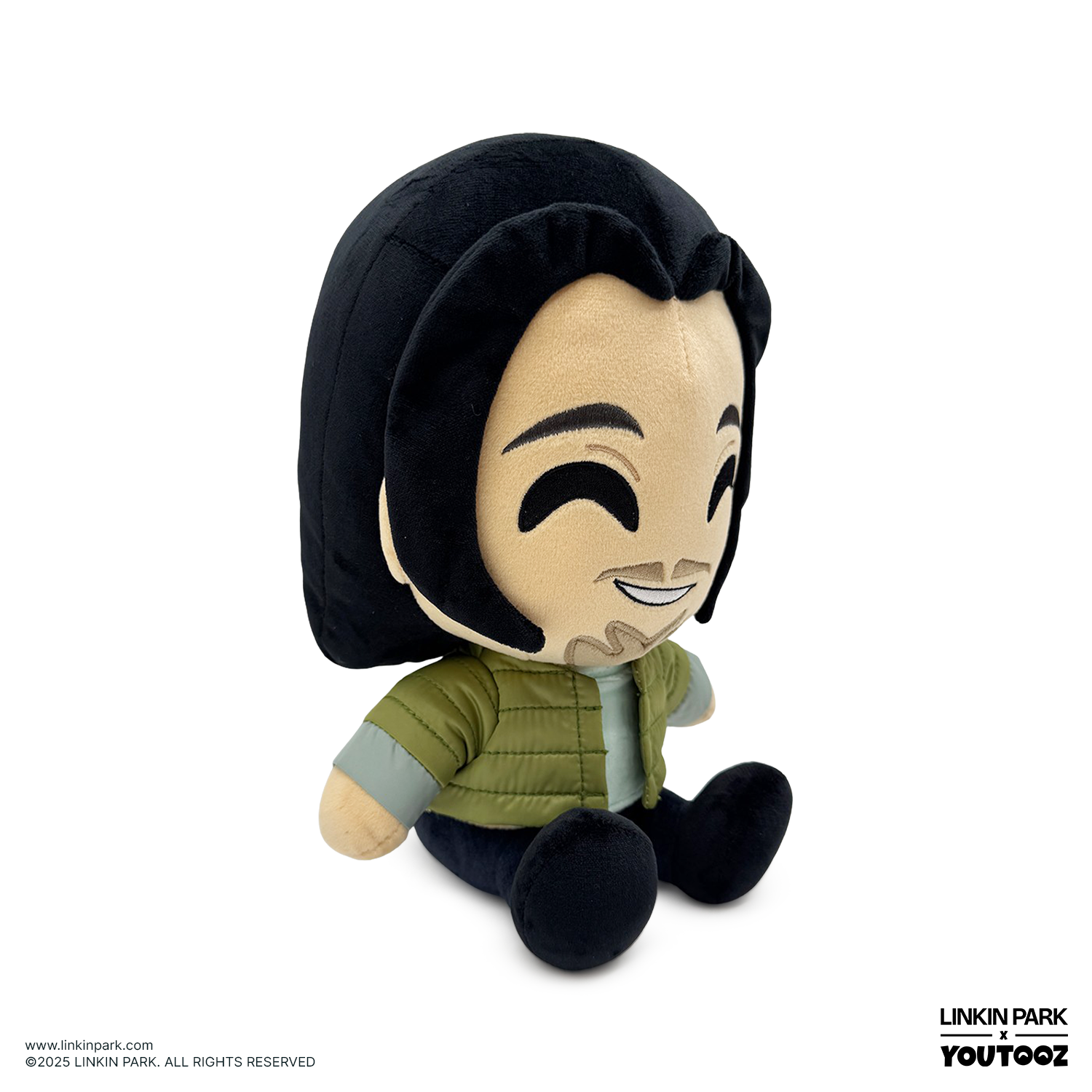 Linkin Park’s been in the studio working on another banger, only this time it’s with Youtooz for their plush debut! Joe sits at 9 inches tall with a playful smirk shining through his light facial fair and thick eyebrows that sit over cheery eyes, as his long fringe is parted in the middle to frame his face and falls down to his shoulders. Keeping it cool and casual, he wears a puffy green nylon jacket over a pale shirt along with dark pants and shoes. This plush is packed to the seams with 100% PP cotton and is made of minky and nylon taffeta materials, absolutely perfect for cuddling or spinning some discs with!