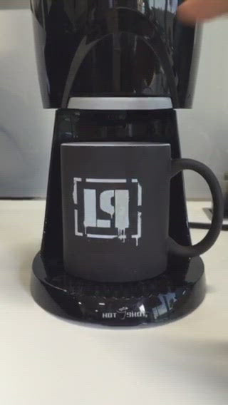 Matte black ceramic mug featuring white LP logo. Matte black fades away to reveal album covers when filled with hot liquid. Top-rack dishwasher and microwave safe. 11 oz.